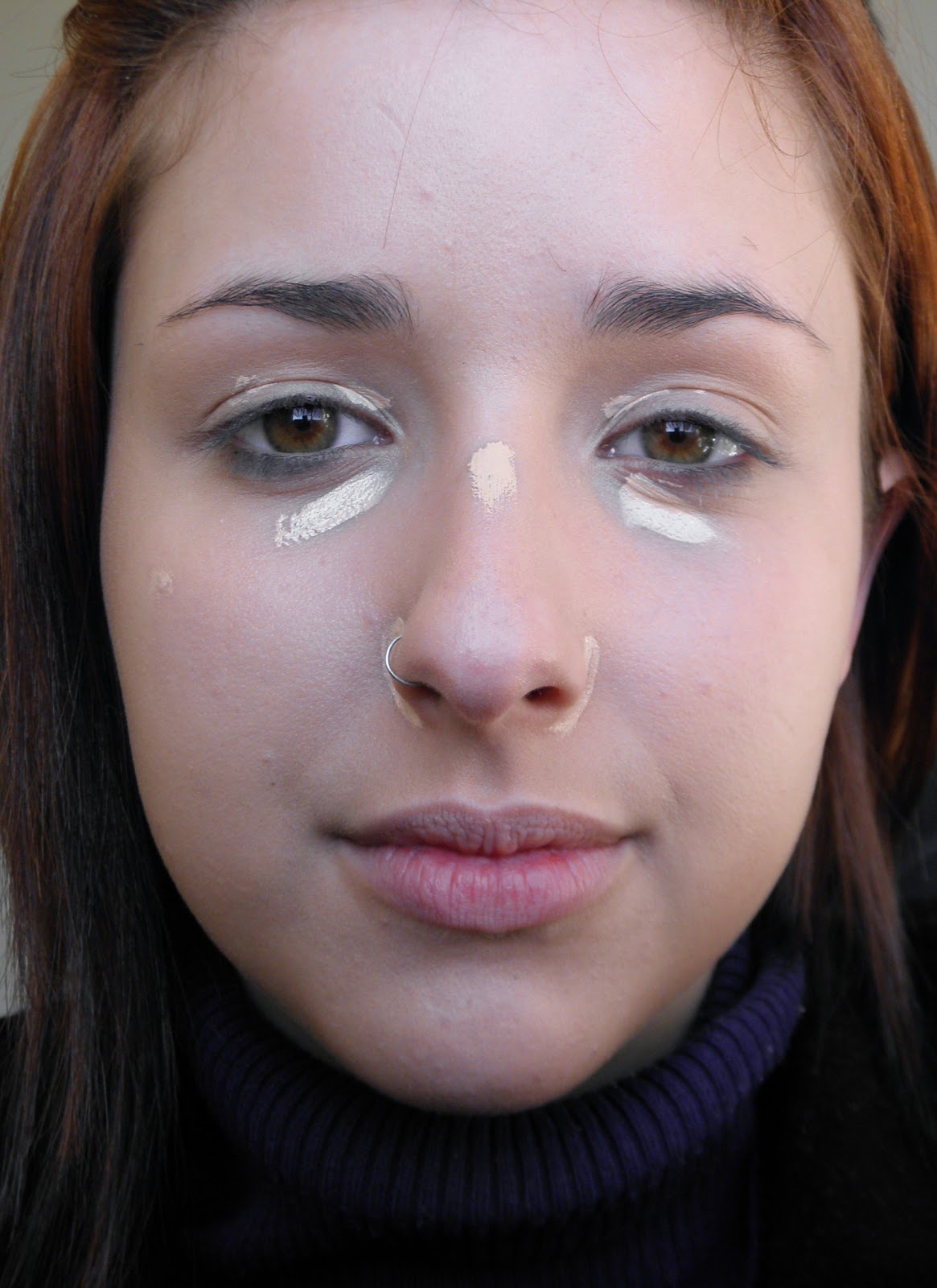 Aplico corretivo nos pontos onde for necessário: nas olheiras, na pálpebra, os cantinhos do nariz e em qualquer pontinho de coloração diferente da sua pele